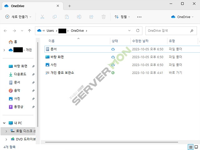 기본적으로 로그인된 MS 계정을 통해 OneDrive를 사용할 수 있습니다.