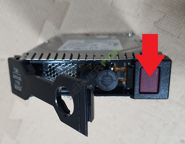 - HDD의 붉은 색 버튼을 눌러서 잠금쇠를 엽니다