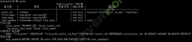 \d 테이블이름 : 테이블에개한 개별 정보 조회