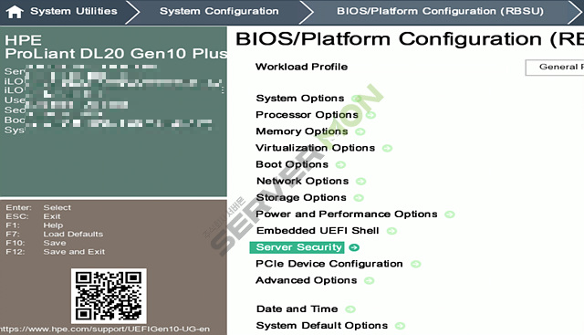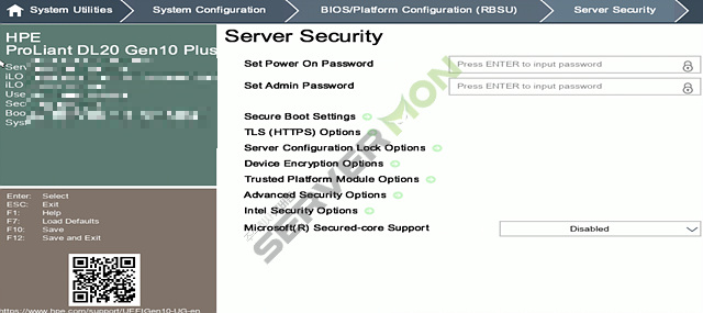 F9 > System Utilities > System Configuration > BIOS/Platform Configuration (RBSU) > Server Security