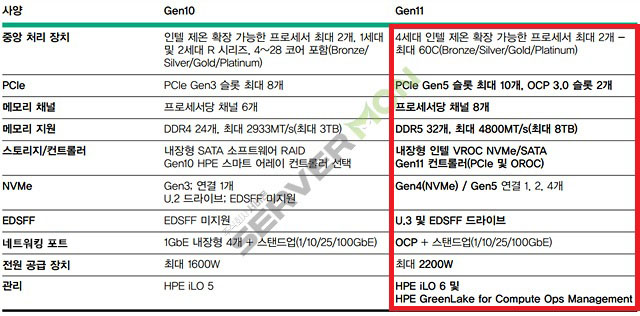 오늘은 HPE ProLiant 서버의 사양을 기준으로 Gen10(Gen10 Plus포함)에서 Gen11로 변경되면서