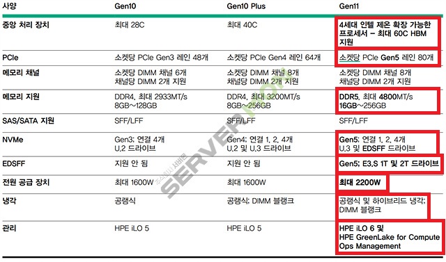 오늘은 HPE ProLiant 서버의 사양을 기준으로 Gen10(Gen10 Plus포함)에서 Gen11로 변경되면서