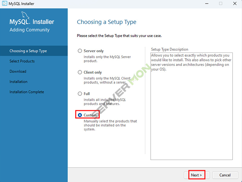 1. 설치파일 실행 후 설치하려는 목적에 맞게 선택해줍니다. (해당 포스트에서는 테스트를 위해 Custom 으로 진행합니다.)