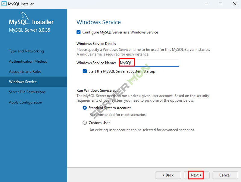 8. Service Name을 설정한 후 Next를 눌러줍니다.