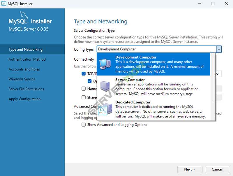5. Config Type에서 사용하는 용도에 맞게 선택해줍니다. 해당 포스트는 테스트로 진행하였기에 Development Computer로 진행합니다.