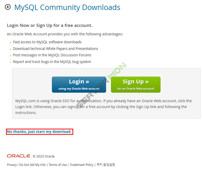 로그인을 하지 않고 파일 다운로드를 위해 "No thanks, just start my download." 를 통해 파일 다운로드를 해줍니다.