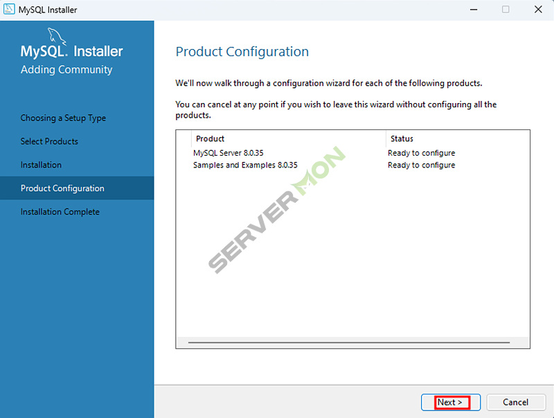 4. MySQL Server와 DB 샘플을 Config 정보에 담겠다는 의미로 확인 후 Next를 눌러줍니다.