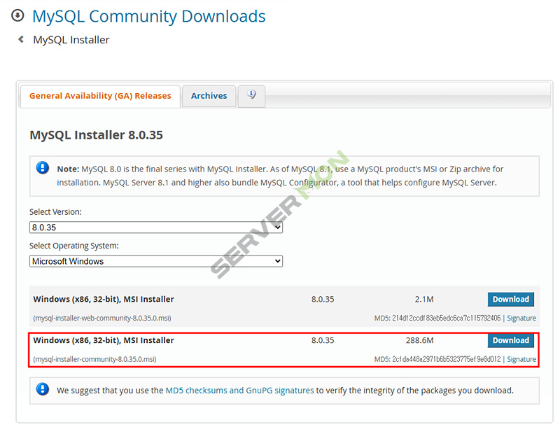Note: MySQL 8.0 is the final series with MySQL Installer. As of MySQL 8.1, use a MySQL product's MSI or Zip archive for installation. MySQL Server 8.1 and higher also bundle MySQL Configurator, a tool that helps configure MySQL Server.
