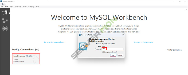 MySQL Workbench 를 실행 한 후 MySQL Connections아래 빨간색 네모칸을 선택해줍니다.