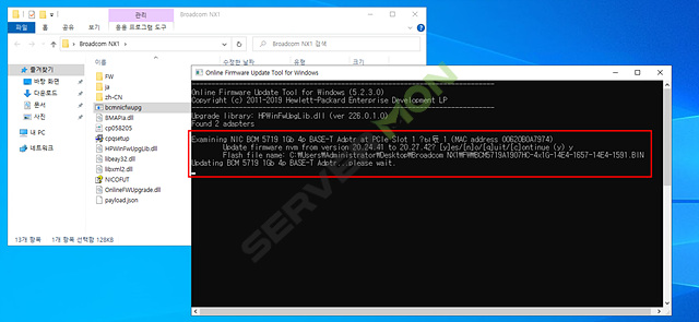 실행이 되면 cmd 창이 나타나며 BCM5719 이더넷의 펌웨어 업데이트를 진행할것인지에 대한 물음이 나옵니다.