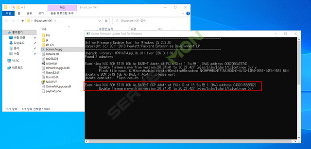 serverinfo 명령어로 BCM5719 버전을 확인합니다.