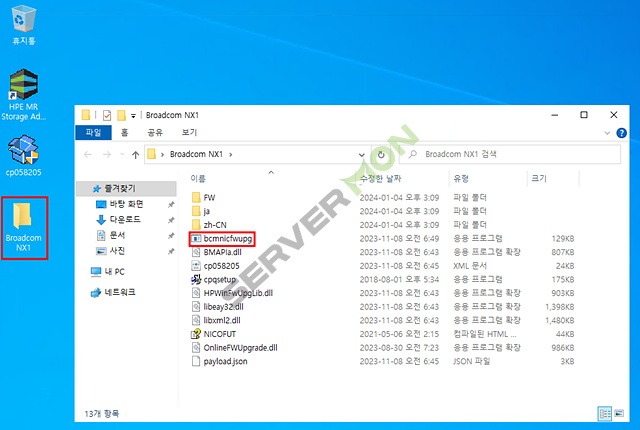 압축이 해제된 폴더에서 bcmnicfwupg 파일을 마우스 우클릭 후 관리자 권한으로 실행해 주세요.