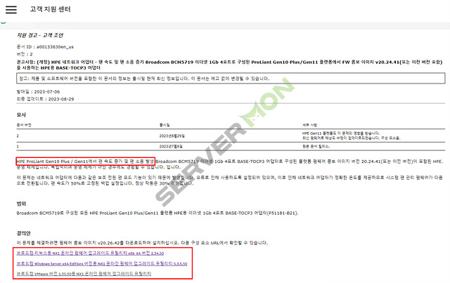 이번엔 Broadcom BCM5719 이더넷 팬소음 이슈관련 내용에 대해 전달 드리려 합니다.