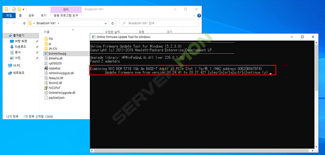 실행이 되면 cmd 창이 나타나며 BCM5719 이더넷의 펌웨어 업데이트를 진행할것인지에 대한 물음이 나옵니다.