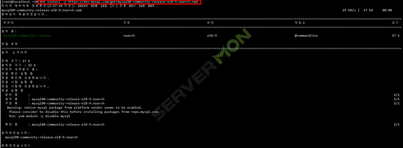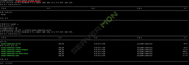 dnf 명령어를 통해 mysql server를 설치해 줍니다.