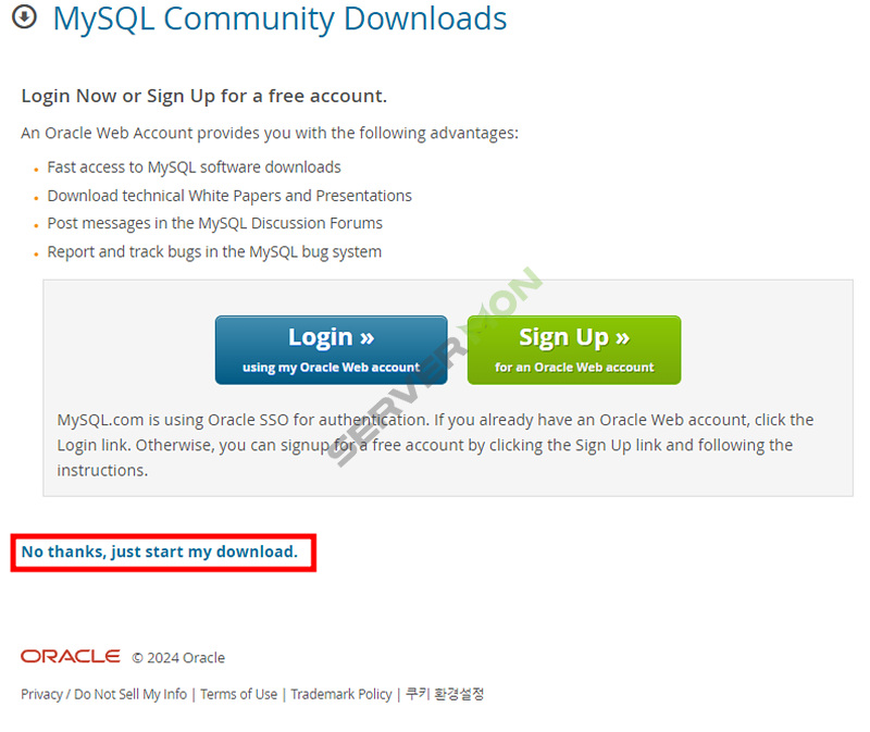 로그인을 하지 않고 No thanks, just start my download.를 눌러 rpm파일을 다운로드 해줍니다.