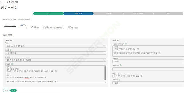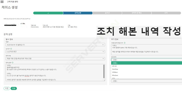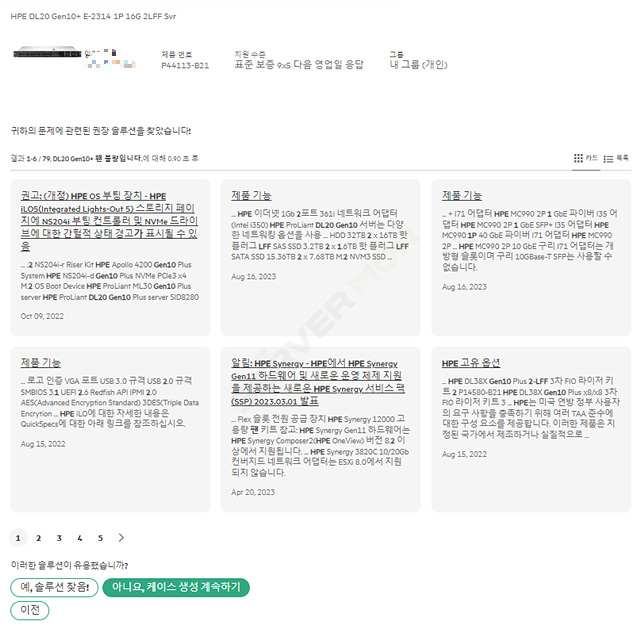 권장 솔루션을 통하여 자가 조치를 하셔도 되지만, 아니요 케이스 생성을 통하여 HPE 정식 케이스 오픈을 하도록 합니다.