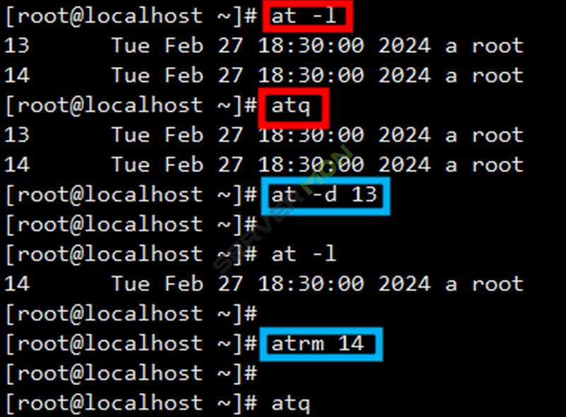 예약 작업 목록 삭제 - atrm 을 실행하는 alias이다.