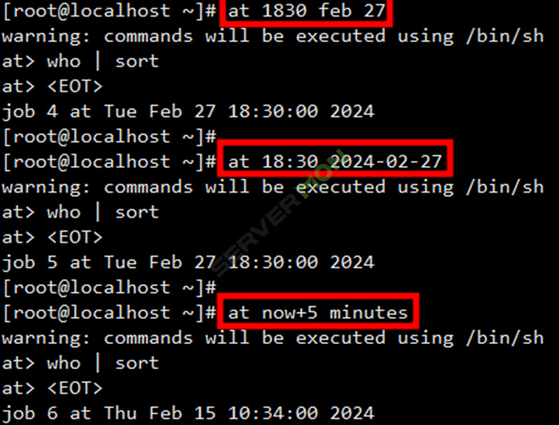 at 명령어는 기본적으로 root 사용자만 사용할수 있습니다.