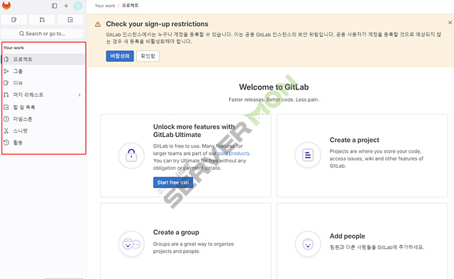 솔루션은 GitLab 을 사용해보도록 하겠습니다.