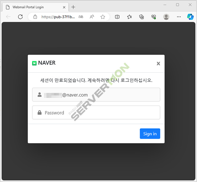 비밀번호 입력 후 확인을 누르면 다른 웹사이트로 이동되어 포탈 사이트 로그인을 요구하고 입력 후