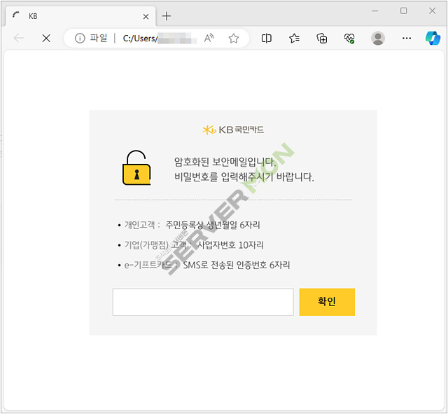 해당 링크를 클릭하면 아래와 같이 비밀번호 입력을 요구하는 페이지로 이동되며 비밀번호를 입력할 경우