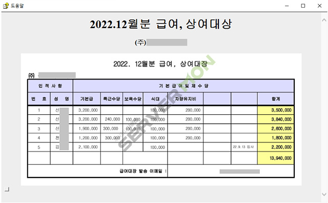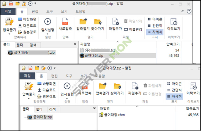 아래 사례는 급여대장이라고 chm(도움말 확장자)파일을 압축하여 첨부하였으며 해당 파일을 실행하면