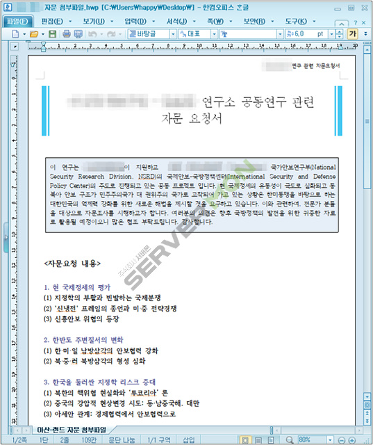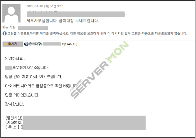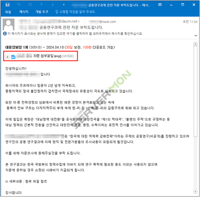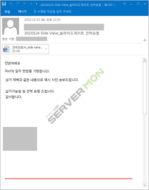 이번에는 첨부 파일을 통해 정보를 탈취하기 위한 공격을 하는 사례를 확인해보겠습니다.