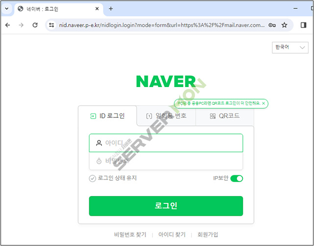 해당 첨부파일의 다운로드를 클릭하면 아래와 같이 네이버 로그인 위장 사이트로 연결되고