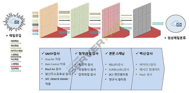 다양한 필터링 기능을 가진 전문 메일 보안 솔루션을 검토해보시는 것을 권장드립니다.