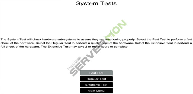 - 시스템 테스트 —정보를 나열하고 하드웨어 하위 시스템이 제대로 작동하는지 확인하는 옵션을 제공합니다. 빠른 테스트 옵션은 하드웨어를 10분간 검사합니다. 종합 테스트 옵션은 하드웨어 전체 검사를 수행하며 완료하는 데 2시간 이상이 걸릴 수 있습니다.