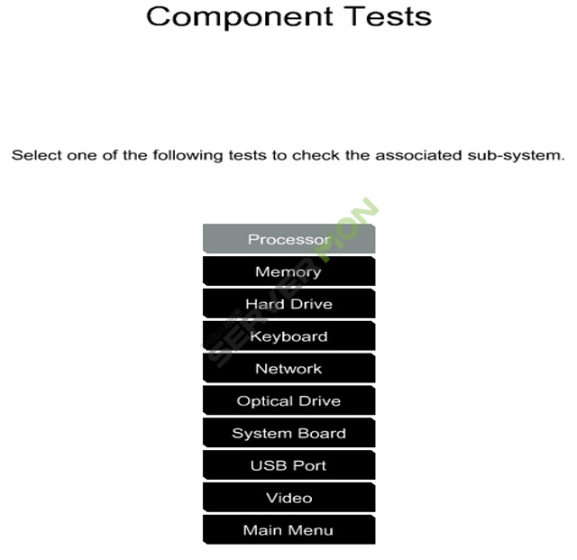 - 구성 요소 테스트 —정보를 나열하고 프로세서, 메모리, 하드 드라이브, 키보드, 마우스, 네트워크, 광학 드라이브, 시스템 보드, USB 포트 및 비디오 테스트를 확인하기 위한 옵션을 제공합니다.