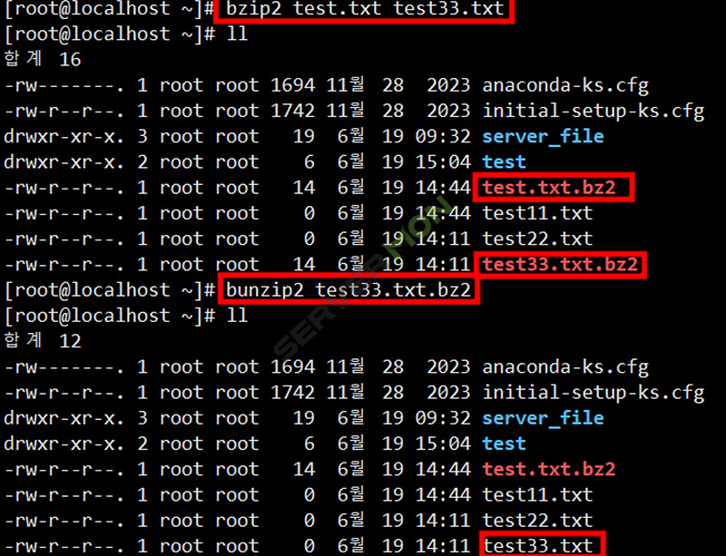 gzip보다 압축률은 좋지만, 압축하는데 더 많은 시간이 걸리며, bzip2로 압축하면 파일명 뒤에 .bz2가 붙고, 압축 해제는 bunzip2 명령을 사용한다.