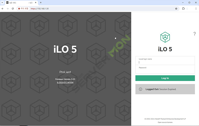 iLO5 Web페이지 접속 로그인을 진행합니다.