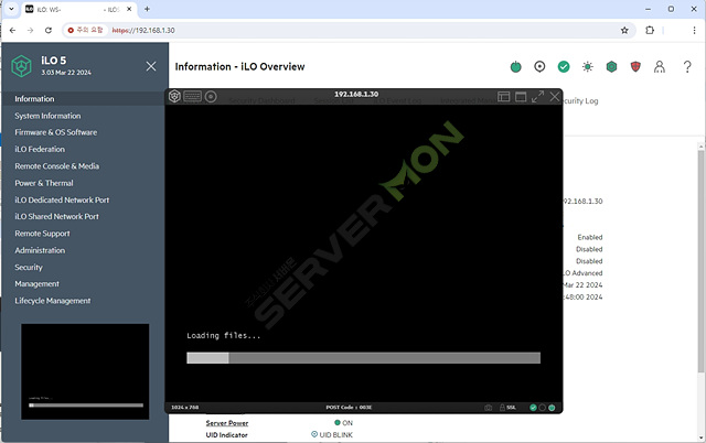 본 가이드에서 iLO 포트가 활성화가 되어 있고 iLO5 Web접속 가능한 상태여야만 합니다.