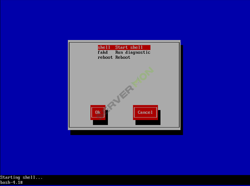 6. shell start shell 을 선택.