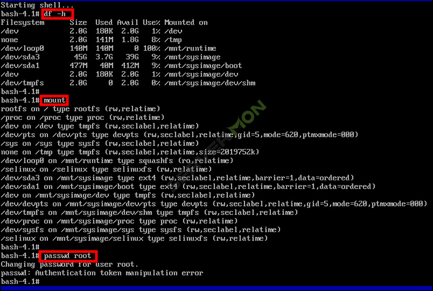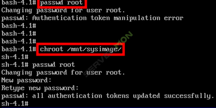 chroot /mnt/sysimage 로 root 권한을 부여합니다.