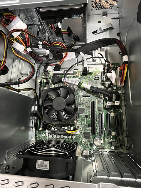 Non hot plug 서버입니다. Non hot plug 모델은 내부 스마트 어레이 컨트롤러 지원이 안되어서 SATA 디스크만 쓸 수 있고 SAS 디스크를 지원하지 않습니다.