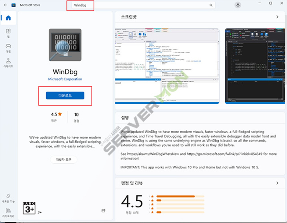 Windows10, Windows11 OS에서 Microsoft Store에 WinDbg 검색 다운로드 및 설치