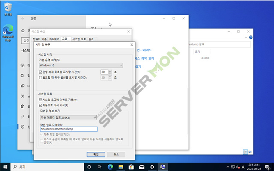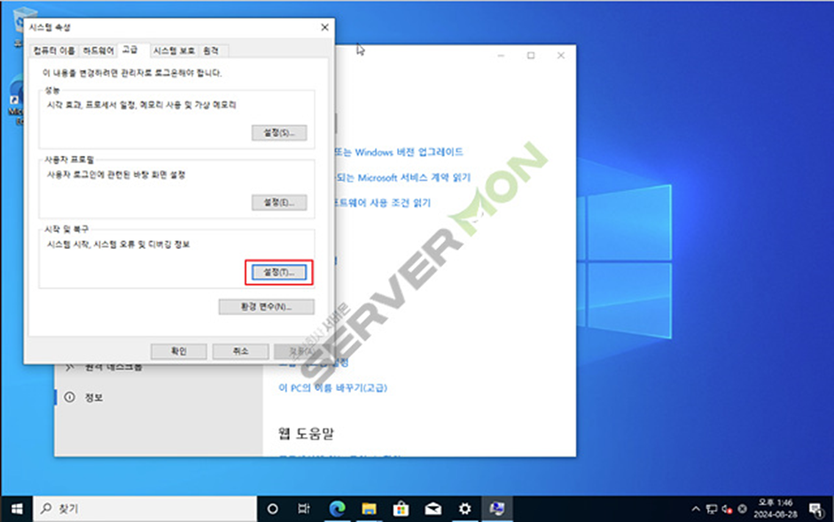 시스템 속성 -> 고급 -> 시작 및 복구 부분에 설정 클릭