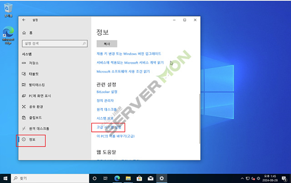 설정 -> 정보 ->고급 시스템 설정
