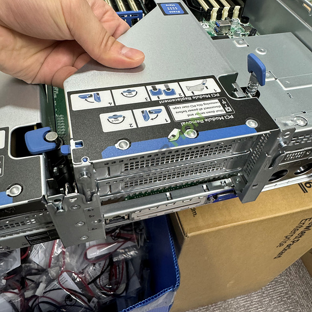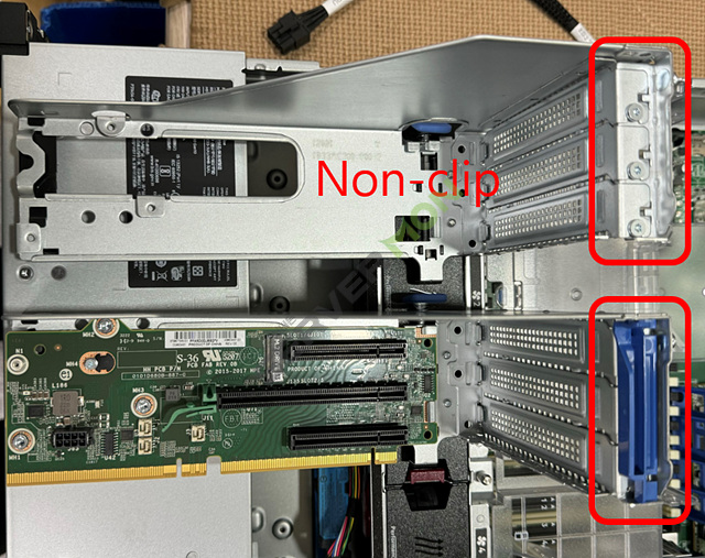 기존 clip 타입 PCI module을 2 Slot 라이저에 장착하도록 합니다.