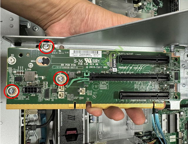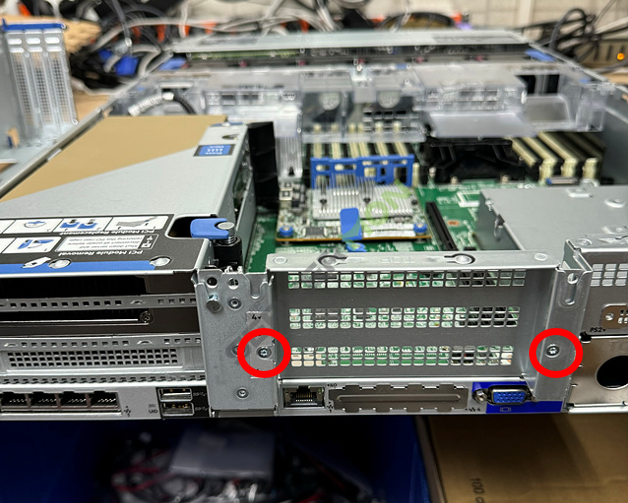 기존 clip 타입 PCI module을 2 Slot 라이저에 장착하도록 합니다.
