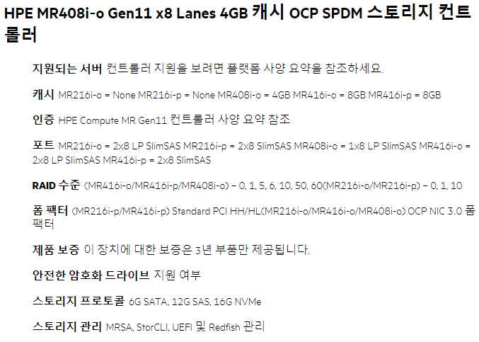 금일은 HPE MR408i-o Gen11 x8 Lanes 4GB Cache OCP SPDM Storage Controller
