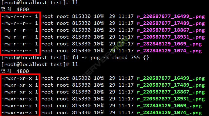 확장자가 png 인 모든 파일을 찾아 chmod 755 을 실행
