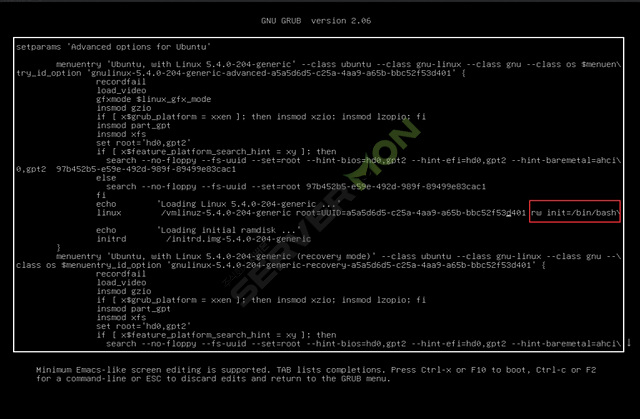 ro -> rw init=/bin/bash 수정 진행합니다.