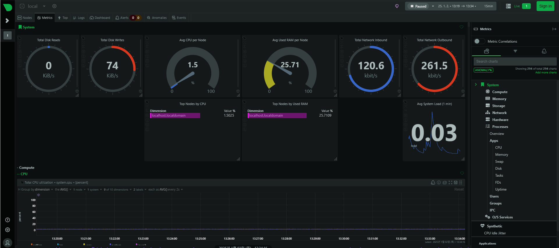 Netdata는 실시간으로 모니터링할 수 있는 오픈소스 도구입니다. CPU, RAM, 디스크, 네트워크, 프로세스 등의 다양한 매트릭스를 제공합니다.