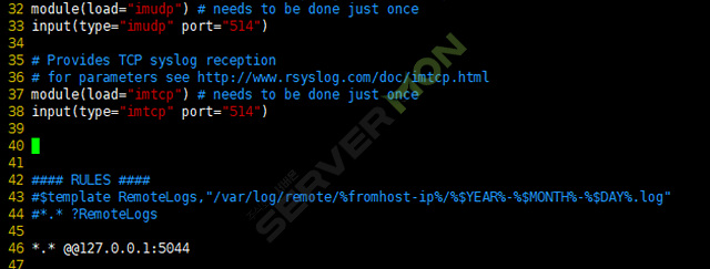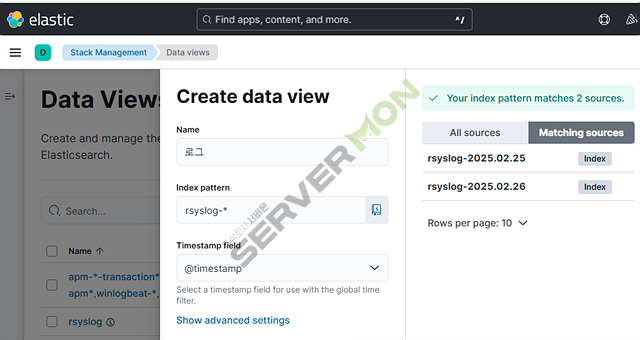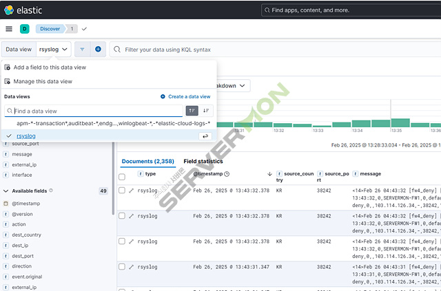 현재 다른 서버로부터 RSYSLOG 데이터를 받고 있습니다.