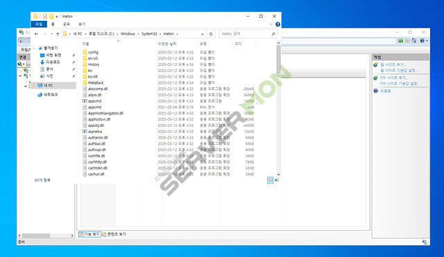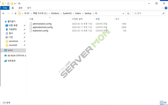 명령어 실행 후 C:\Windows\System32\intersrv 폴더 밑에 \backup\IIS 폴더가 생성되고 IIS 구성 파일이 백업됩니다.