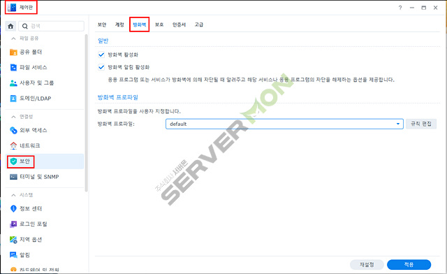 제어판 – 보안 – 방화벽탭에서 활성화를 한 후 추가한 정보에 맞게 방화벽 허용을 해줍니다.